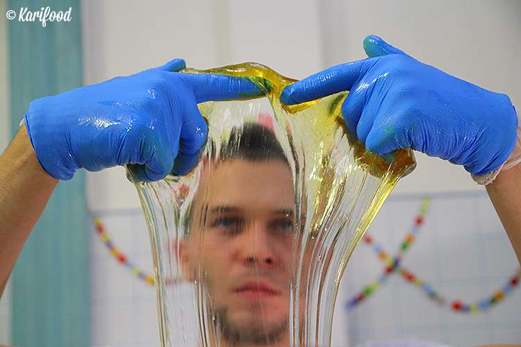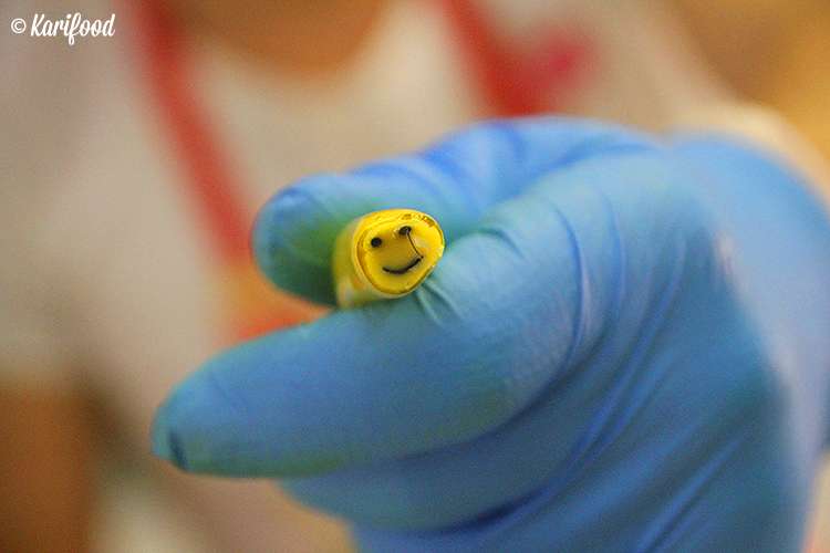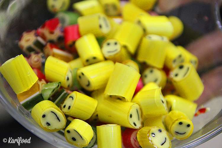 Принцип лепки конфет в которых на срезе есть всевозможные цветы, надписи, апельсиновые дольки или розочки — примерно такой же, как в работе с полимерной глиной для бижутерии и украшений, с той лишь разницей, что карамель намного съедобней, чем декоративная паста фимо. Средний стандарт карамельки — кусочек размером 1х1 сантиметр. За 15 минут непрерывной работы, во время которой карамели не дают остыть, кипящая бесформенная масса превращается в конфетку. И еще теплой, прямо с пылу с жару, гостям дают попробовать получившуюся карамельку — свежее этой конфеты ничего быть не может!