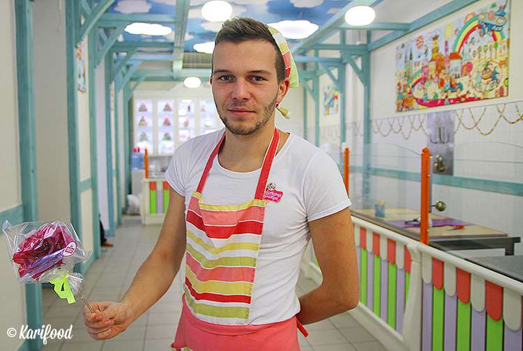 В «Майстерне Карамелі» вы можете смело спрашивать хоть сто леденцов, хоть сто кило конфет, хоть статую самого себя, отлитую из карамели — на заказ здесь могут изготовить все, что вы пожелаете!