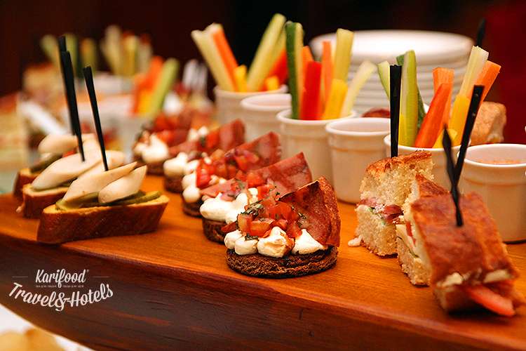 За фиксированную стоимость вы получаете напиток на выбор — бокал игристого, апероль или другой коктейль и доступ к безлимитному фингер-фуд бару с мини-сендвичами, луковой фокаччей, овощными палочками, колбасками, прошутто, сыром, пончиками zeppole, грессини и прочей гастрономической миниатюристикой.