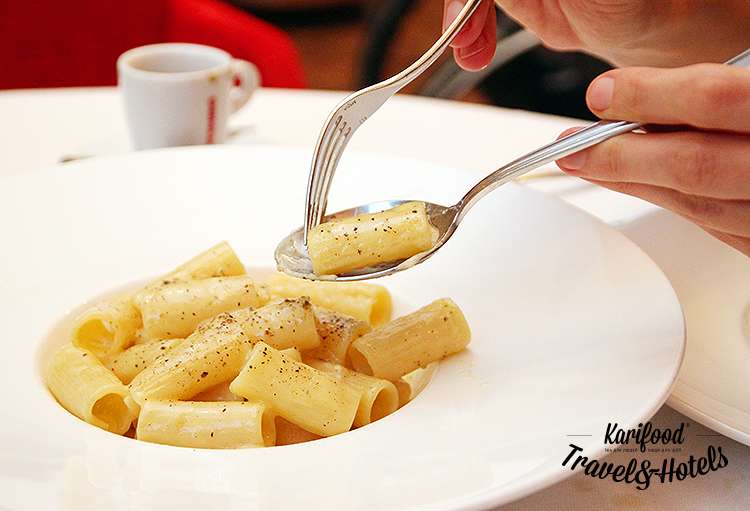 Между тем, всё дело в правильном выборе сыра и особом умении перемешать его с пастой так, чтобы сливочная мягкость сыра равномерно обволакивала каждую трубочку и не слипалась в сырный комок, а чёрный перец не оттеснил вкус пасты на задний план.