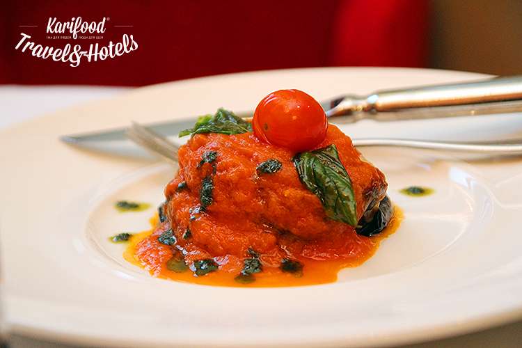 Одно из самых успешных блюд в Mille Miglia — печёный баклажан с томатами и травами по рецепту мамы Фабрицио.
