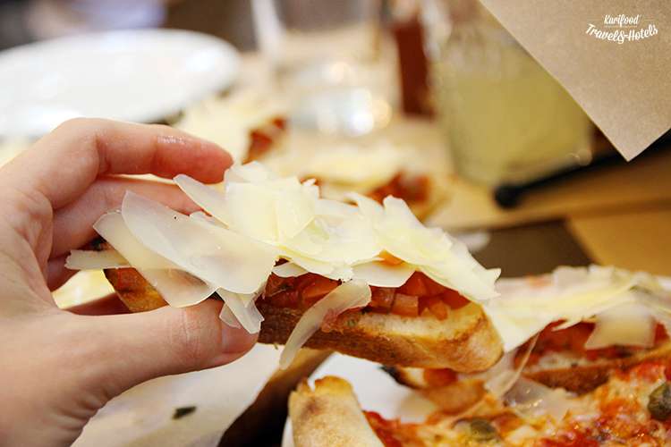 Окрім піци, в меню ще вагон і більше смакоти. Я нарешті знайшла чи не єдине місце в столиці, де готують класні, як на мій смак, брускети: не скибочки хлібу, поховані десь під огромом мало поєднуваних між собою вишуканих інгредієнтів, а такі, що мають справжній смак італійського півдня — сам лише хрусткий багет, посічені томати, дрібка пармезану, часникова олія. Це космос, як смачно!
