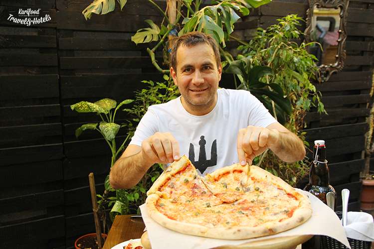 Нам пощастило: надвечір, без попереднього бронювання ми умостились за останній вільний столик на літній терасі Veterano. Замовили три величенькі піци, погодивши між собою: якщо несила буде подужати таку кількість вуглеводів, те, що залишиться, заберемо додому, як то кажуть, на «нічний дожор».