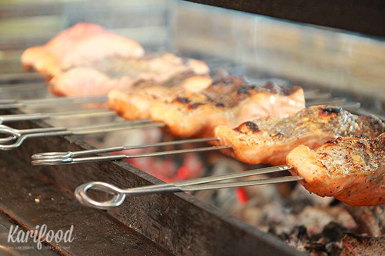 Хороший пример умелого использования «робаты» Ллойд тут же демонстрирует участникам проекта Food Education, собравшихся в гостях у Mr. Zuma — на гриль отправляются цыплята и лосось в соусе терияки.
