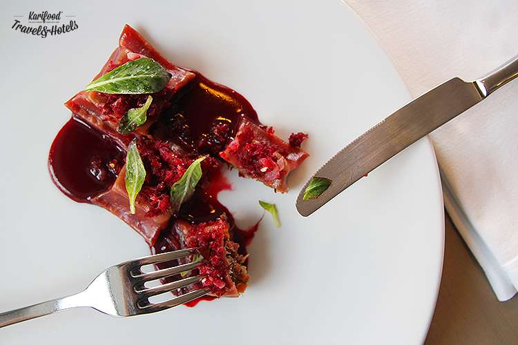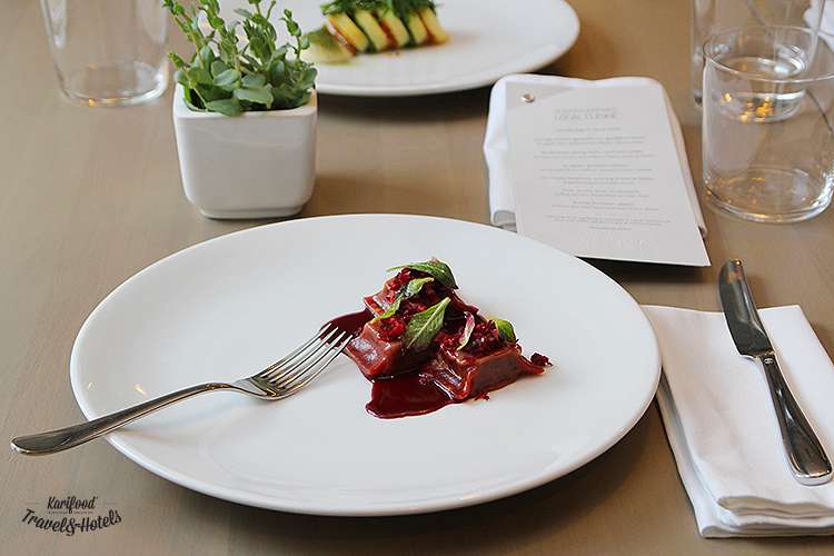 Более того, свекла, морковь, конопляные зерна, йогурт из овечьего молока, форель, воловьи щёки, тыква, облепиха не просто некие абстрактно локальные продукты — напротив каждого блюда в меню указан фермер, хозяйство или теплица, откуда те прибыли и были изготовлены.