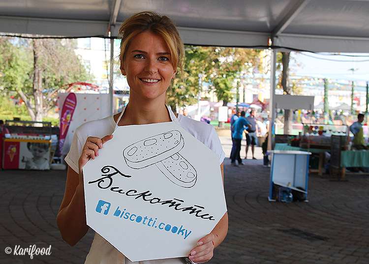 — На Kiev Family Day мы вообще пекли печенье на глазах у зрителей. Незнакомые люди, которые видят меня за прилавком, не верят, что это я сама же его и пеку! Мы с Машей шутим, я ей говорю перед выходом на фестиваль: «Маша, смазывай мне нос шоколадом или присыпай мукой, чтобы люди верили, что я сама всё пеку!» Поэтому на Kiev Family Day я хотела показать, что всё очень просто, вот этими руками, вот этот человек печёт для вас бискотти вот в этой духовке! И бискотти тогда разбирали ещё горячими, печенье даже остыть не успевало!