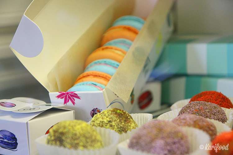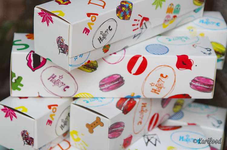 «Коробку для макарони, к примеру, мы создавали 3 месяца. Мы возились с ней, собирали макет, я складывала в неё пирожные и возила весь день в машине, она летала у меня по салону на скоростях, потом я открывала и смотрела, что осталось целым. Если макарони ломались — значит, нет, это ещё не «наша» коробка. Мы уменьшали макет в местах, где трескались макаруни, в итоге теперь они не трескаются. Вот в чемодан положил — и поехал. В Нью-Йорке открыл — и всё хорошо, может, одна треснет.