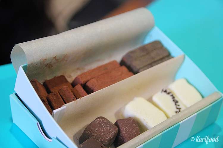 «У меня есть мальчик, который занимается только шоколадными конфетами, целыми днями он купает конфеты в шоколаде. Каждая конфета у нас делается вручную. Например, конфета маракуевая делается так: сделана маракуевая начинка, после этого начинка замораживается в минус 40 градусах, и потом каждая отдельная конфета купается в растопленном молочном шоколаде, ставится на противень, застывает, после этого конфету купают ещё раз в шоколаде, и наконец, её ставят на противень, чтобы уже дать ей окончательно высохнуть.