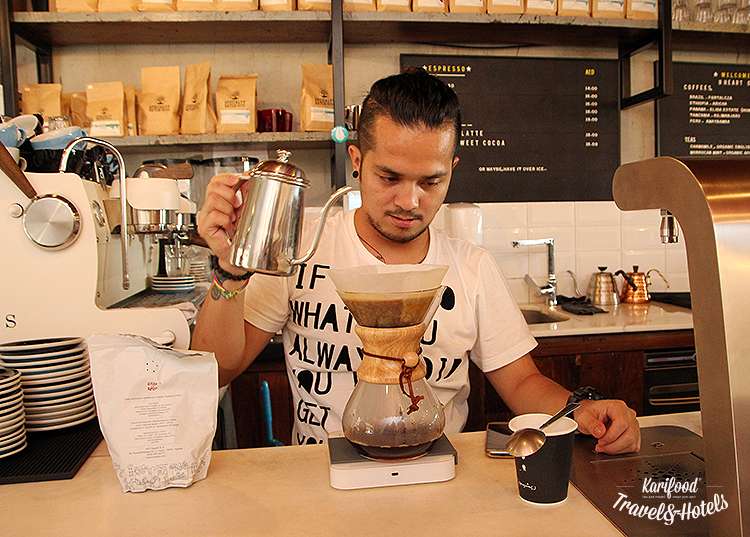 — В Ratios мы не обжариваем кофе, у нас есть наши местные поставщики, ребята из Дубаи, которые обжаривают кофе для нас. Я считаю, что такой вид сотрудничества — самый правильный и нужный для общества. Зачем мне распылятся на обжарку, если я могу доверить это человеку, который этим занимается профессионально? Такой подход даёт работу всем, и это, в конечном итоге, хорошо для всех, к тому же, работать с другими — этоздорово! Мы все помогаем друг другу! Например, мой обжарщик, Райан, ездит по всему миру, посещая кофейные фермы, к началу сезона сбора урожая он даёт мне выборку по 15-20 кофейным сортам, которые, по его мнению, заслуживают внимания. Мы в Ratios проводим каппинг-сессию, и из предложенных им образцов выбираем те, которые, как нам кажется, будут и людям интересны, и продаваться будут хорошо. И каждый из нас занят своим делом!