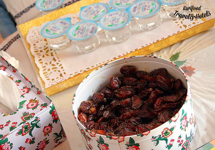 Вода в Эмиратах дороже бензина, но всё же, куда бы вы не зашли — от музея до бутика, от отеля до мечети — вам обязательно предложат стакан воды (индивидуально упакованный в круглую коробку), миниатюрную чашку арабского кофе с кардамоном и фуала — маленькие угощения: финики, халву, конфеты с вялеными фруктами.