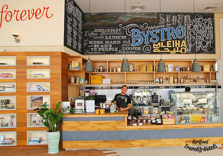 Снаружи — плюс 40, песчаная буря и жар от камней и песка, внутри — комфортные и прохладные плюс 20, мягкие диваны и на удивление хорошо приготовленный флэт-вайт от бариста маленького примузейного бистро.