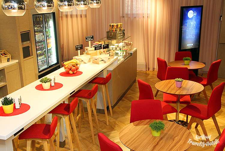 Вместо традиционного утреннего ресторан-буфета — мини-кафе самообслуживания с базовым набором кофе, чая, снеков, булочек, фруктов, салатов.