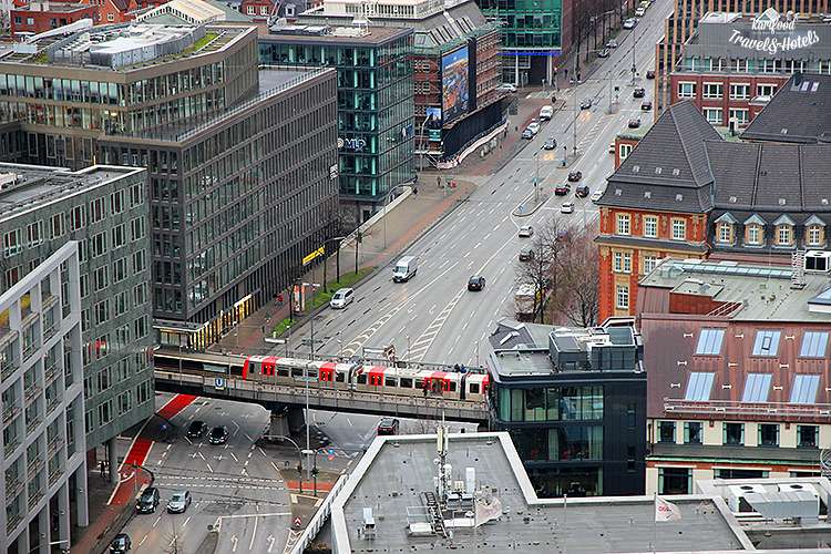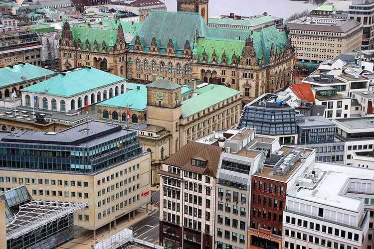 А ще у башті працює швидкісний ліфт (квиток коштує 5 євро), яким можна дістатися невеличного оглядового майданчику під шпилем — і ось весь Гамбург перед вами!