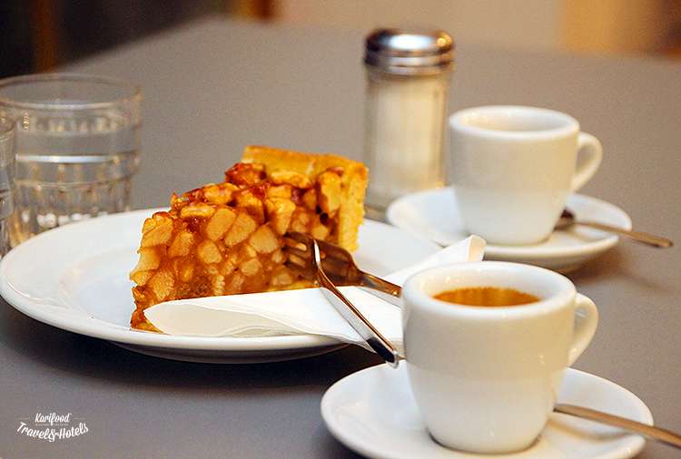 На вітрині знайдете ду-у-уже смачний яблучний пиріг, готовий гідно конкурувати із засиллям паштелес (деякі завсідники приходять в Milch на каву із загорнутими у серветку паштелес із сусідньої крамниці, за це не сварять).