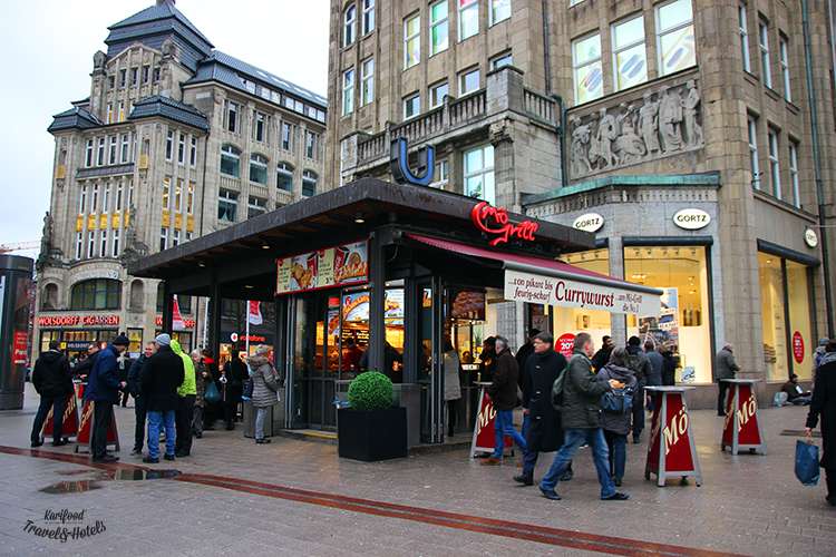 Гарячі вюрсти з гірчицею в Mö-Grill — це найяскравіше гастрономічне враження від Гамбургу: веселі продавці, купа людей довкола — і в розкішних пальто, і в засмальцьованих куртках, старі і молоді. А ще дощ, і картонна тарілочка з каррі-вюрст, і п’ять смачнючих соковитих сосисок на двох замість обіду!