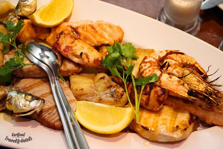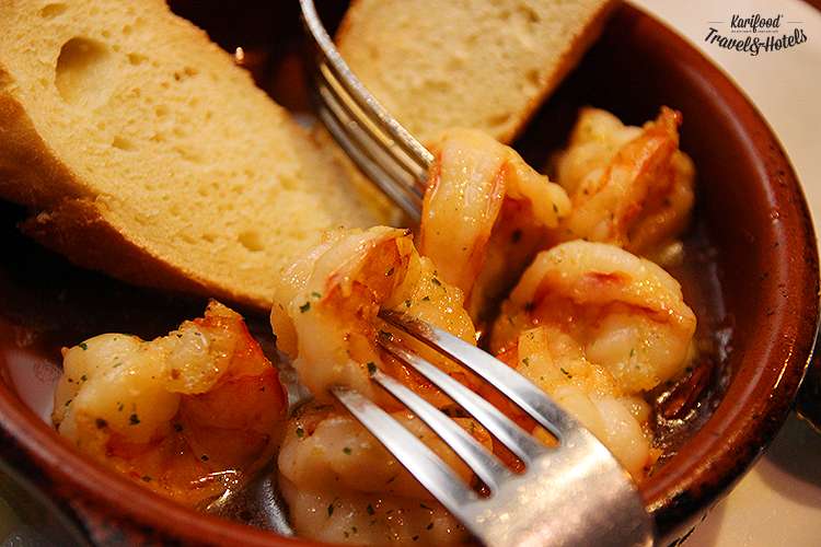 Це була дуже смачна вечеря, з пухким смачним хлібчиком, з дослівно палаючими креветками в гострому перці і з часниковою олією, та величезною тарелею рибних наїдків на двох: креветки, стейки з тунця, лосось, хек, сардини і ще якась неупізнавана рибка. До речі, в O Pescador дуже багато страв готують «на двох», є трошки їжі для вегетаріанців, та багато страв із м’яса.
