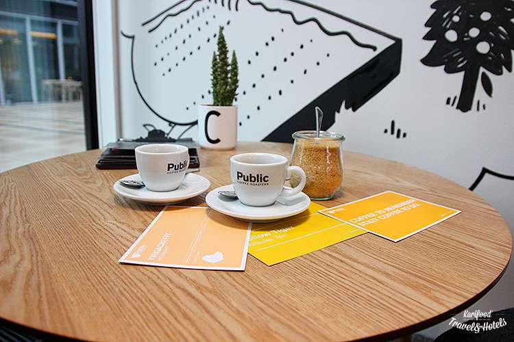 Великий Public Coffee створений для відпочинку, бо відстані між столиками дозволяють усамітнитися у власних думках, витягнути натомлені ноги і цмудлити каву без перестороги, що хтось інший зараз перечепиться через вас із склянкою фільтрованої кави.