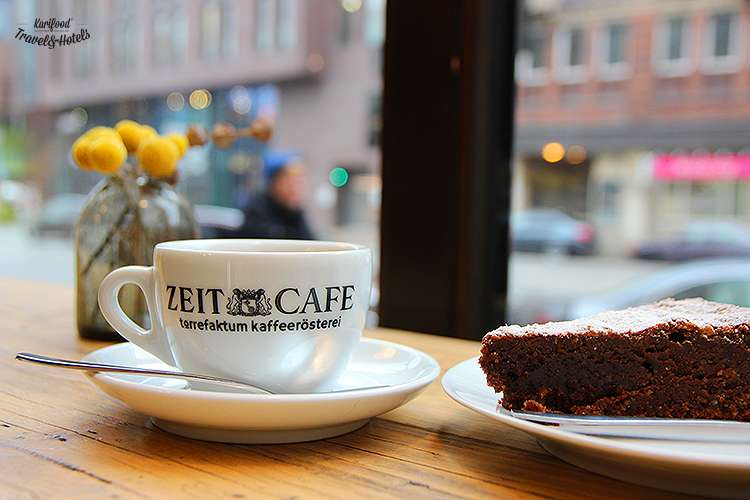 Кава-шоп ZEIT Café (Speersort, 1) пропонує не тільки каву класичну чи альтернативу, а ще й чудові смаколики (тутешній шоколадний пиріг — чиста любов!).