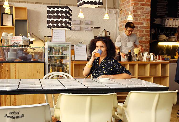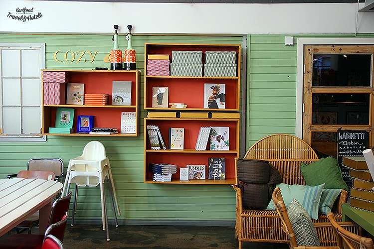 А крім того це ще й учбовий кавовий центр Helsinki School of Coffee. Тут можна провести кілька затишних годин, працюючи, попиваючи каву, поїдаючи солодкі пундики, або ж наминаючи повноцінний обід, ще й тринькаючи гроші на чудові книжки, кольорові рушники, свічки, світильники — ну, то вже самі розберетесь, тринькати чи протистояти спокусам.