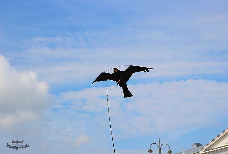 Над ресторанчиками та ятками напнута сітка, а на гнучких палицях розгойдуються паперові та полотняні круки, що мали б відлякувати бакланів та чайок.