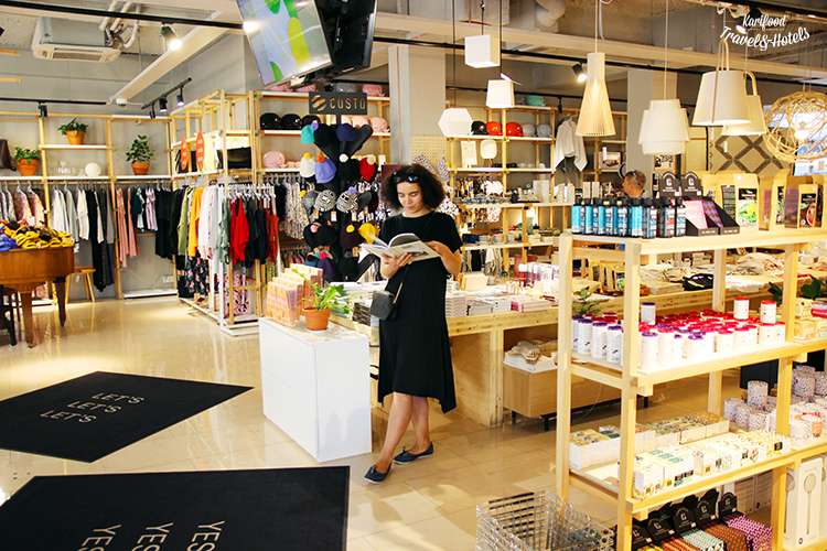 Від надміру красивих речей (вони ж всі потрібні, всі й негайно!) можна трохи перепочити за кавою чи салатиком — у крамниці працює невеличке кафе-їдальня.