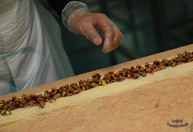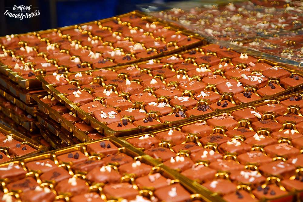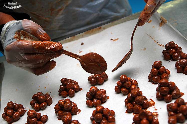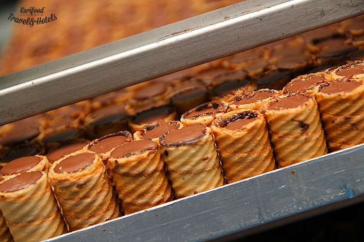 А ещё обязательно заглянуть в танкер с горячим шоколадом и посмотреть, как барабан наматывает тонкие нити теста для баклавы «волосы ангела», ну, и, конечно же, попробовать горячих, только-только из печи вафельных трубочек с шоколадом, цукаты, печенье и шоколадные «бомбочки»!