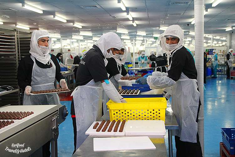 Но одно дело сидеть в бассейне с видом на Марину Дубай и поедать финики в неприличных количествах, а другое – увидеть своими глазами, как горячая шоколадная глазурь заливает пралине или как финики в мягких шоколадных футлярах катаются по конвейеру.