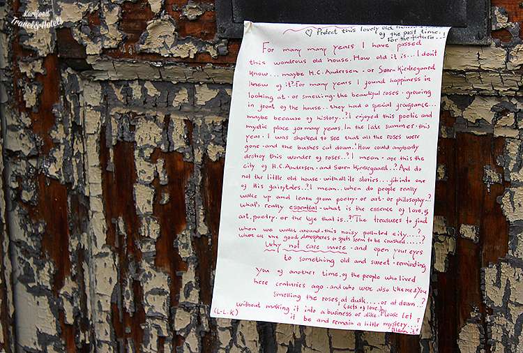 В доме номер 20 писатель сочинил «Принцессу на горошине» и «Огниво», квартировался Андерсен также и в доме номер 67, а покинул сей мир, лёжа в кровати дома номер 18.