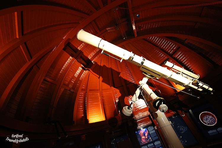 Помимо телескопа в верхнем ярусе, в Башне есть и кафе с выставочным залом, и небольшие экспозиции, посвящённые астрономии и, конечно, прекрасная видовая площадка, откуда в пасмурный день буквально сдувает ветром.