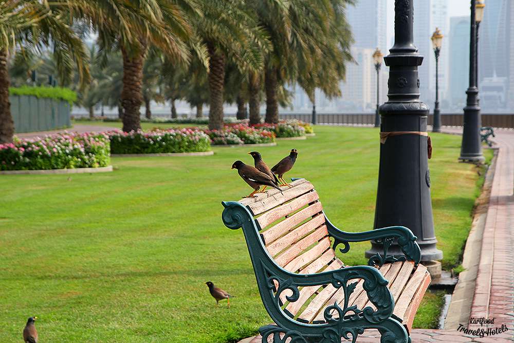 Шарджа — город весёлых детей, огромных благоухающих парков, город вкуснейших хумусов и колоритных микроскопических ресторанчиков, сладостей и мороженого, зелени и пальм, семейных уличных пикников, футбольных мячей, смеха и фиников в шоколаде, присыпанных миндальной пудрой, город музеев, цветов, колоритных мозаик и уходящих в небо шпилей минаретов.