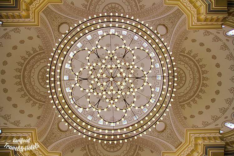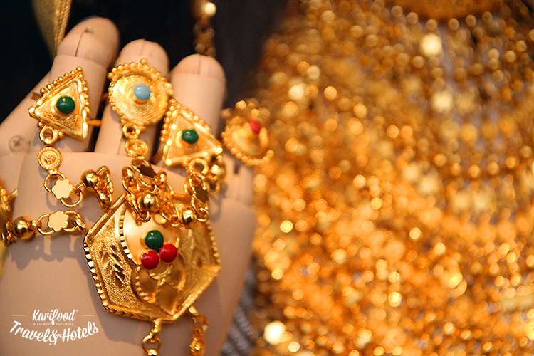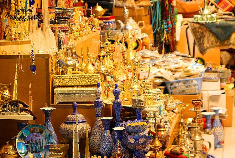 Снаружи здание, обильно украшенное мозаикой, напоминает вагончики паровоза, внутри представляет собой две длинные двухэтажные галереи лавок с текстилем, коврами, бриллиантами и золотом.