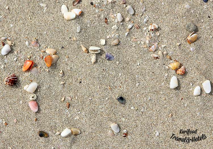 Песок на побережье мелкий и сыпучий, почти не пристает к ногам, волн практически нет.