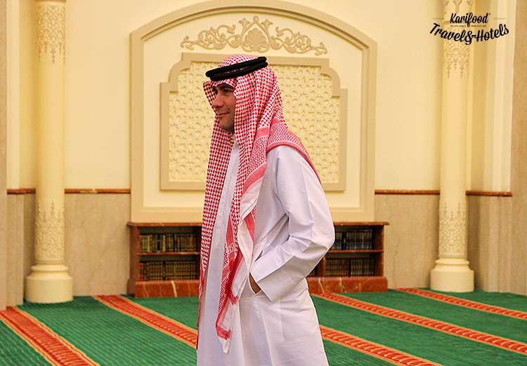 Требования к мужчинам относительно дресс-кода не очень строги (можно войти даже в шортах, если те ниже колен), то для женщин обязательны абая — чёрная верхняя накидка и шейла — платок на голову, их выдают при входе, где посетители оставляют обувь. Мужчинам, одетым «не по дресс-коду», выдают белые кандуры.