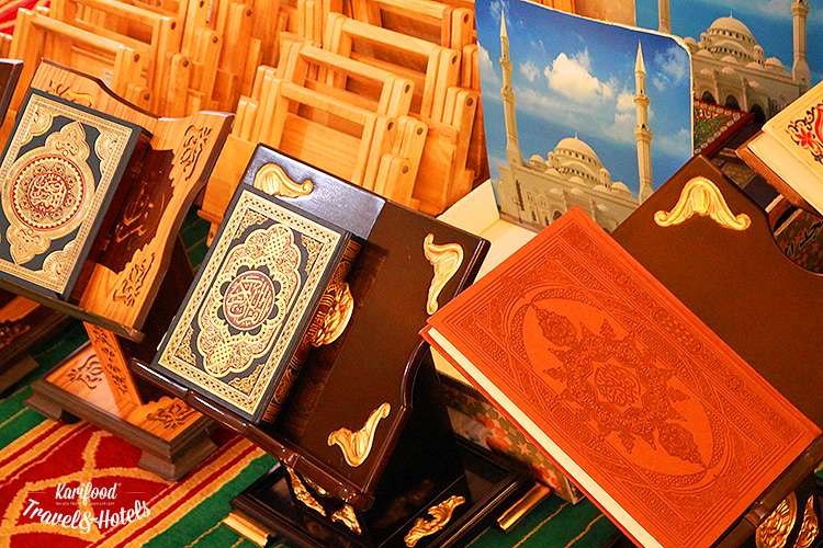 Здесь выставлены старинные и новые, но отлично оформленные издания Корана, кроме того, возле мечети разложен деревянный стол, где туристы могут взять с собой бесплатно карту города, путеводитель, пару симпатичных открыток и мини-разговорник арабского с набором базовых «здравствуйте», «спасибо» и «сколько это стоит?».