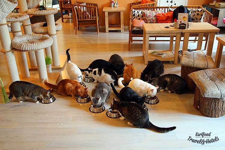 Это невероятно мило! В кафе спросите книгу с короткими рассказами о каждом кото-обитателе, в ней нет душещипательных историй и драм, но зато подробно описываются повадки и хитрые уловки каждого хвостатого обитателя.