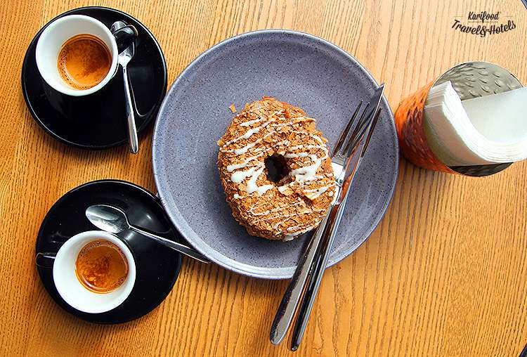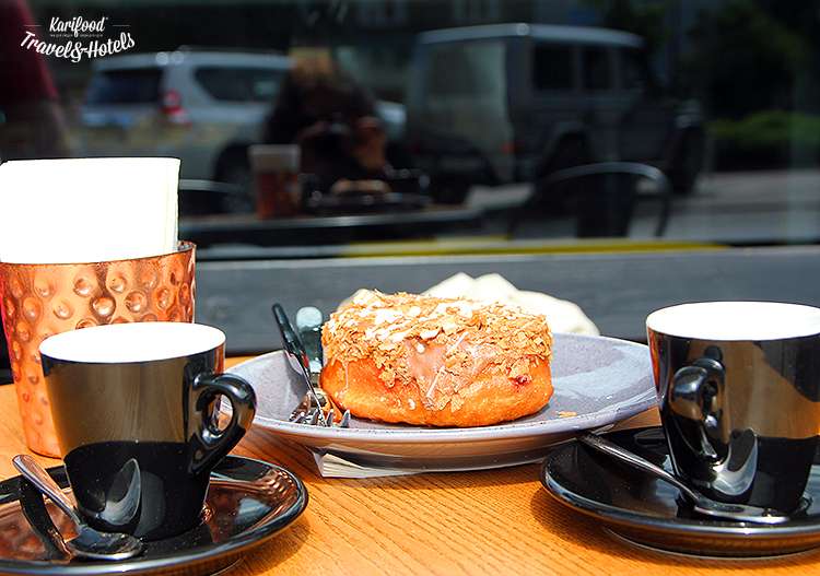 По соседству с Zatar в том же доме — кафетерий Donut, где можно разжиться пончиками — липкими, жирными, разноцветными, в глазури и без, посыпанными ломтиками орео, сахарными звёздочками, солёными крендельками и прочими ужасами диетолога, зато тут же варят отличного качества эспрессо.