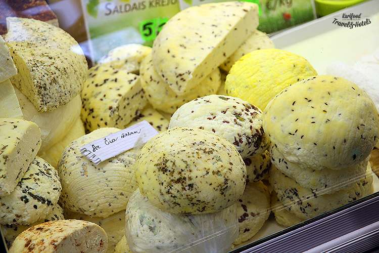 В молочном павильон большой выбор фреш-сыров в травах и пряностях. А вот из выдержанных сыров — разве что литовский Джюгас, балтийский пармезан.