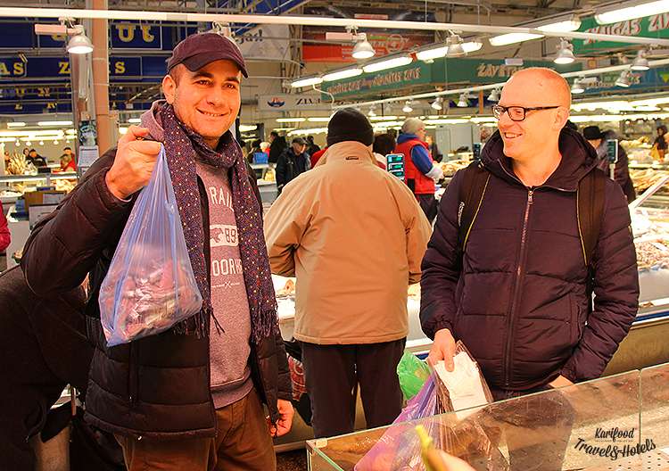 Если за время прогулки по рынку вы нагуляли зверский аппетит (а вы его нагуляете!), обязательно загляните в крошечный рыночный ресторанчик «Селёдочка и Укропчик» между рыбным и овощным павильонами. Здесь космически вкусно, дёшево и душевно!