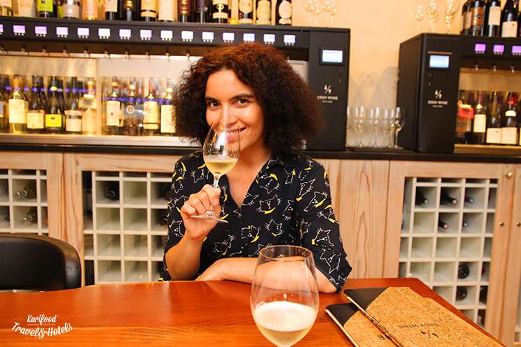 Пляшки з вином розмішені у спеціальних шафах-диспенсерах: рожеві, десертні вина, червоні та білі. Офіціант вам дає спеціальну депозитну картку на 50 євро, і ви ходите із келишком між цими шафами і дегустуєте вино, яке на вас дивиться.
