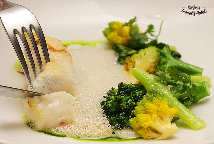 Масло приносять на морських камінчиках, які колись позбирали на узбережжі рибалки — ті, хто привозить в Le Dome свій улов. Дуже рекомендую з тутешнього меню морського чорта з кількома видами капусти та філе осетра з крокетами та листям настурції.