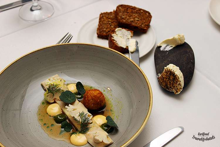 А ще локальна риба, яку сюди на кухню доставляють із риболовецьких сіл, місцевий делікатесний осетер, сезонні овочі та ягоди і моя сердечна любов — домашній хліб та свіже вершкове масло з насінням конопель.