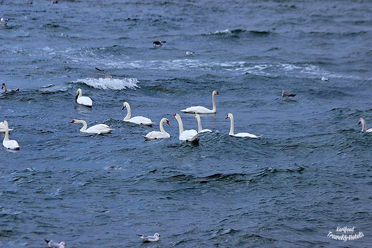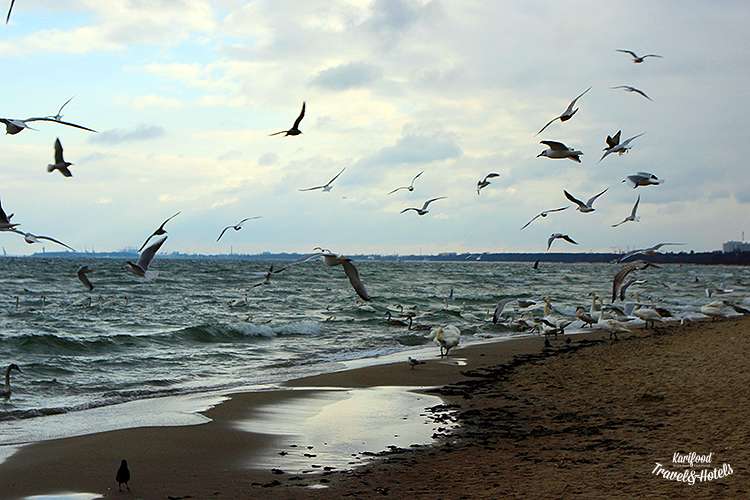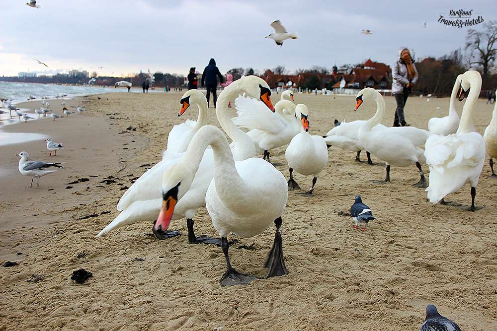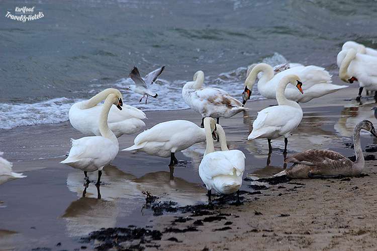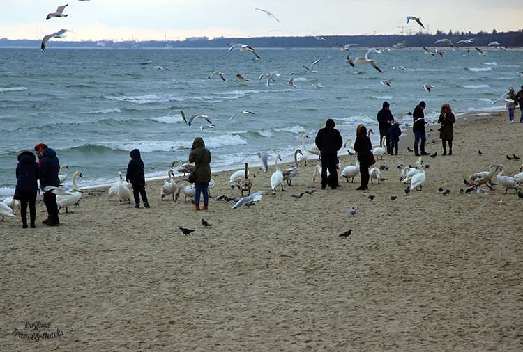 Розкішні лебеді, чайки, що неквапливо прогулюються у пінному мереживі Балтики і купа туристів, які з дитячим захопленням бігають з фотокамерами і смартфонами між птахами.