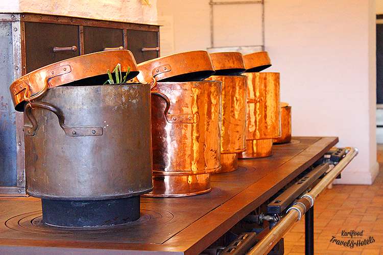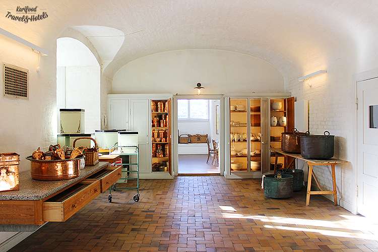 Раньше, когда королевская семья отправлялась в тур по своим владениям, переезжая из замка в замок, вся кухня (общий вес медной посуды 2 тонны!) кочевала следом за монархами.