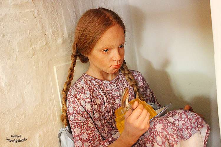 Да, да, все экспонаты можно трогать (кроме тех, что в закрытых стеклянных шкафах), вертеть, поднимать, рассматривать. Музей полностью погружает в атмосферу подготовки к королевскому пиршеству. Все диорамы снабжены звуковыми эффектами: вода шумит, булькает бульон на плите, мясо шипит в сотейниках, трезвонит телефон, требующий срочного второго выноса блюд в зал!