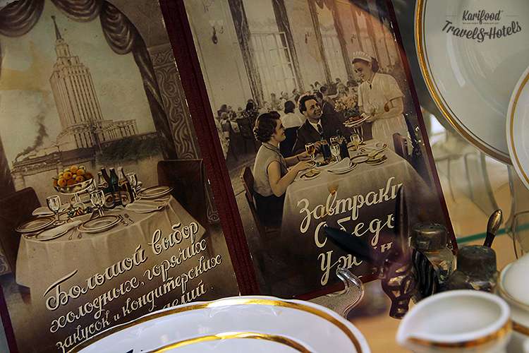 В дальней комнате музея царит конец советской эпохи: здесь накрыт новогодний стол с традиционным серебристым дождиком и мандаринами, в витринах — советские ресторанные меню, милейшие чашечки, тарелочки «как из маминого буфета», на подоконнике — книги о здоровой и полезной пище!