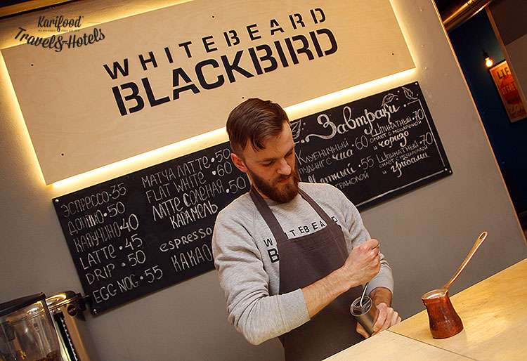 В культовом месте, знаменитом своей кофейной альтернативой, владельцем Андреем Чуковским, божественным чизкейком Стилтон и прекрасной бариста Наташей Гончаровой, которая хоть и работает в другом заведении Андрея, время от времени всё же появляется в Blackbird — тоже варят «джезву».