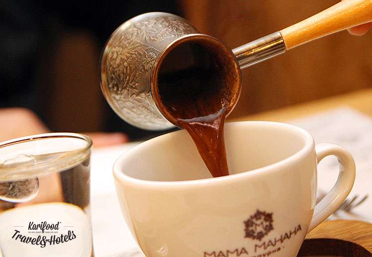 Неподалёку от Мusafir можно найти ещё одно местечко с «этническим кофе», на этот раз — «по-сухумски». В хачапурной МАМА МАНАНА кофе в джезве варят на универсальном бразильском кофе Сантос, подают со стаканчиком чистой воды.