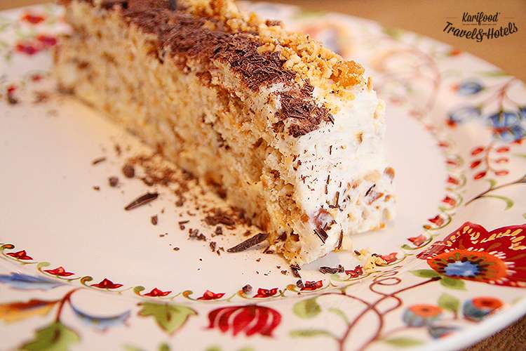 Безусловный и главный друг кофе по-львовски в Хуторце — волшебный «Киевский торт», максимально приближённый к тому-самому-торту-с-тайным-рецептом.