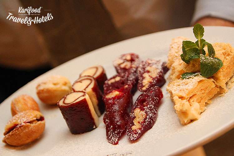 В оазисе шоколадного счастья, в ресторане-кондитерской Von Kluschke кофе на песке соседствует с колоритным марокканским чаем с мятой, арабскими сажами, кус-кусом и цыплёнком по-ливански.