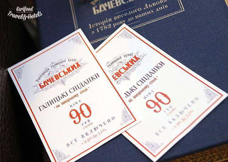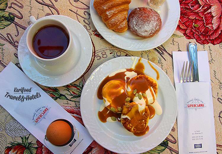 Завтраки здесь сервируют с 8 до 11 утра, затем Бачевских переходит в обычный формат ресторана новой галицкой кухни. Резерв столика на вечер не просто желателен, он обязателен, желательно за два-три дня, особенно в сезон.